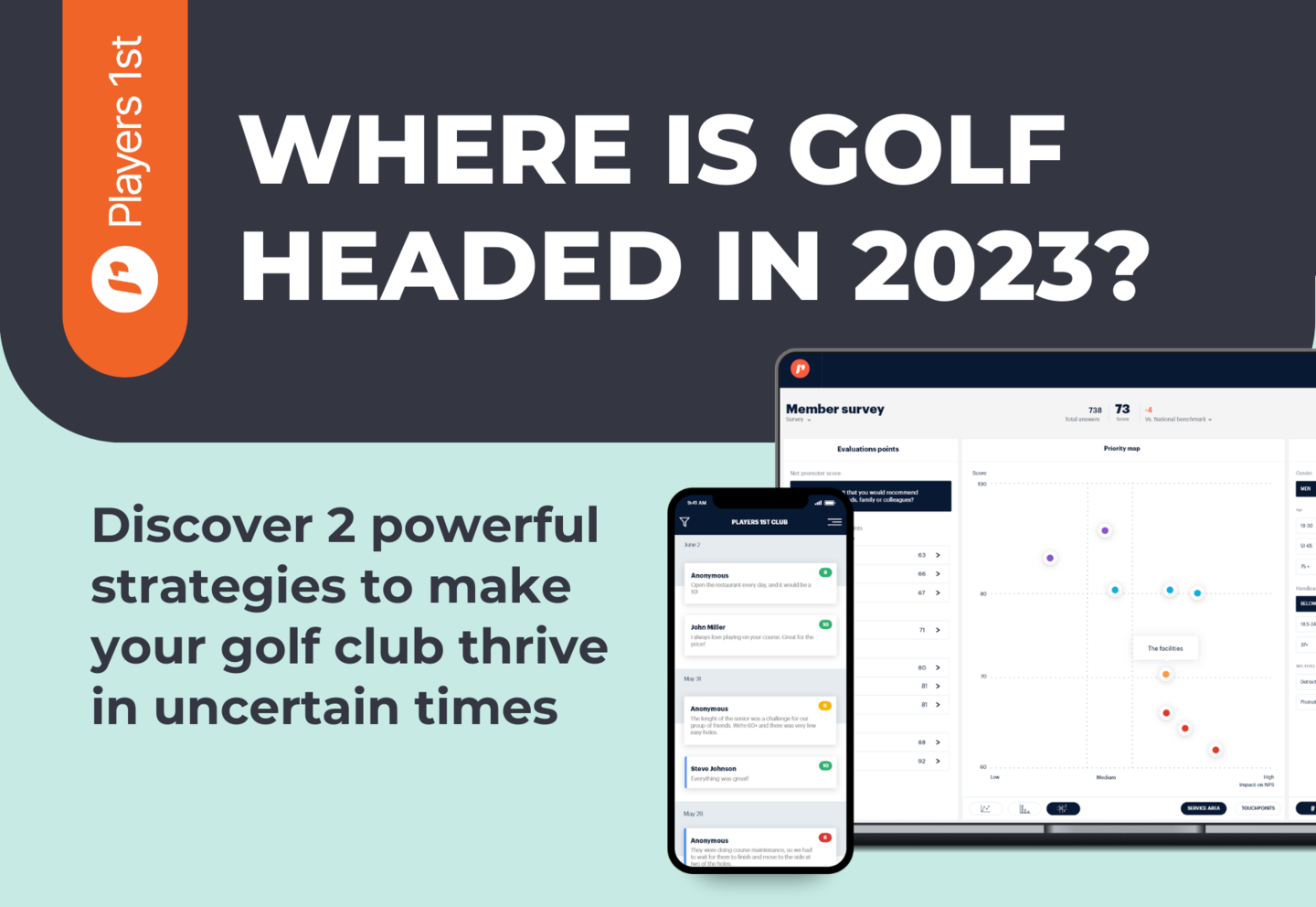 By using customer experience management (CxM) technology, you can collect and analyze on feedback. More than 2000 clubs globally are using the CxM platform by Players 1st, as it is designed specifically for golf clubs. They use it for survey templates, real-time notifications, advanced analytics and benchmarking. And that data can be a game changer during these uncertain times. Because we believe that it is more important than ever to listen to players and staff if you want success in 2023.