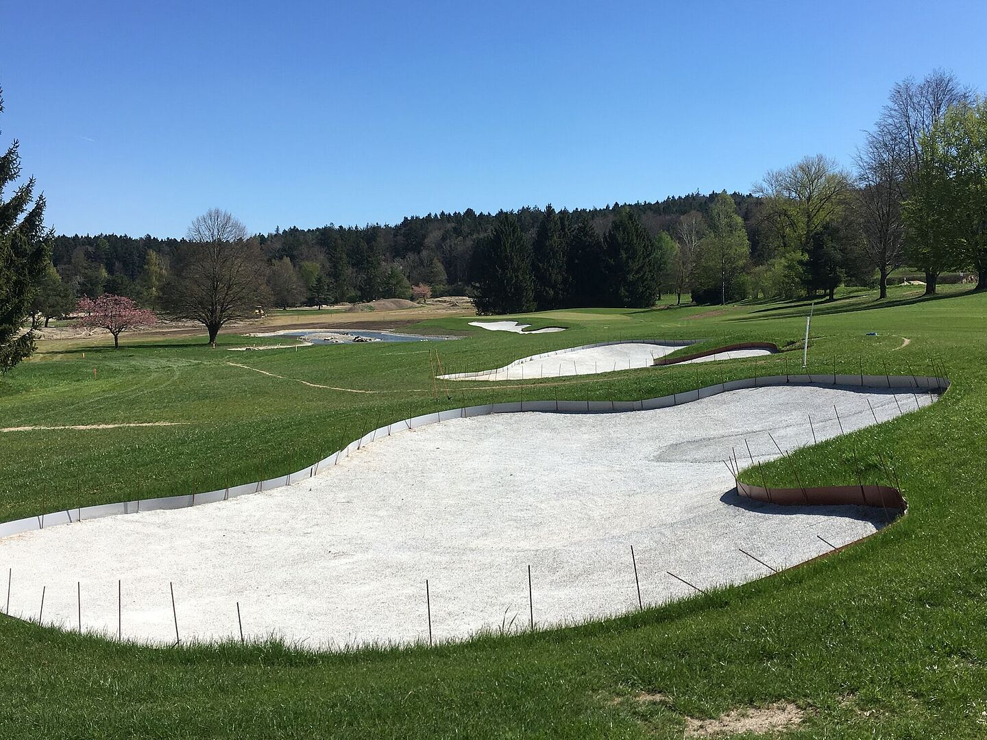 Gerade beim Thema Starkregen und Überflutung wird auch die Bunkerkonzeption von Golfanlagen immer mehr zum Thema. Die Gestaltung von Bunkern ist ebenso wie deren Größe und Anzahl für zukunftsfähige Plätze besonders relevant. Die Investition in Stabilisierungsschichten im Bunker, die eine Vermischung von Kies und Sand sowie eine Verstopfung der Drainagen verhindern, ist zwar kostenintensiv, erleichtert aber gerade in Gebieten, die vermehrt von besonders starken Unwettern betroffen sind, die Spielbarkeit und verhindert größere Erosionsschäden.