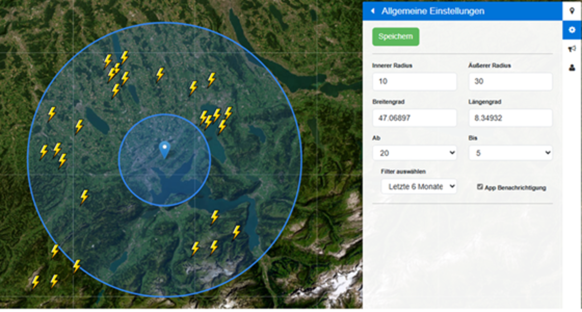 - Individuell einstellbar in Bezug auf u.a. Warnradien, Warntexte, Warnuhrzeiten, etc.