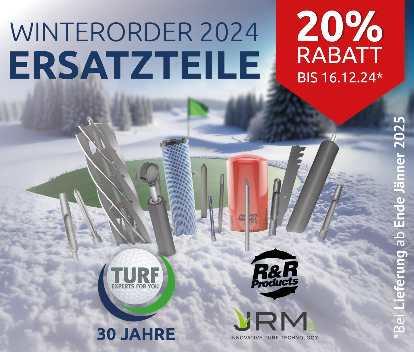 Auch dieses Jahr haben wir etwas Besonderes für Sie: Bis 16. Dezember* erhalten Sie 20% Rabatt auf Zubehör und Ersatzteile von JRM und R&R – von Spoons über Untermesser bis hin zu Spindeln – sowie auf fast alle Ersatzteile für Ihre Golfplatzmaschinen!