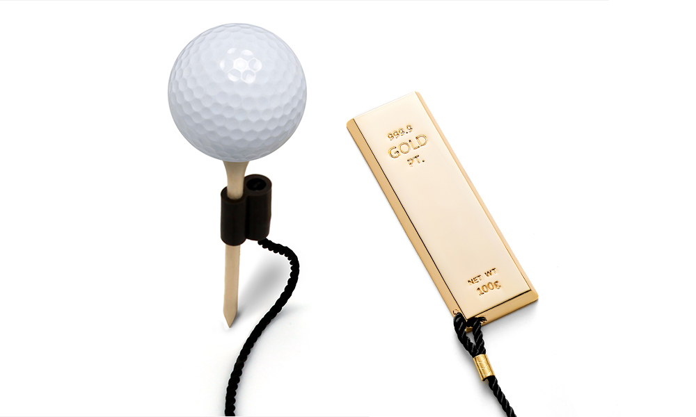 Ein Beispiel: Der „100 g Goldbarren Tee Holder (24 K vergoldet)“ – ein 24-Karat vergoldeter Tee-Halter in Form eines Goldbarrens, kombiniert mit Leder-Manschette und edler Geschenkverpackung.